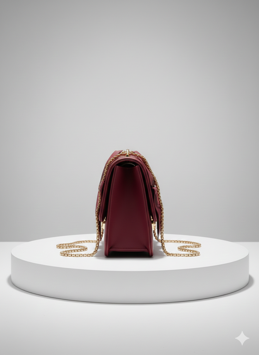 Picture yourself at your next event – the soft material under your touch, the delicate chain resting on your shoulder, and the admiring glances as the bow catches the light. This isn't just a bag; it's your confidence accessory, your conversation starter, your perfect finishing touch.